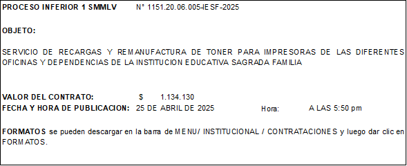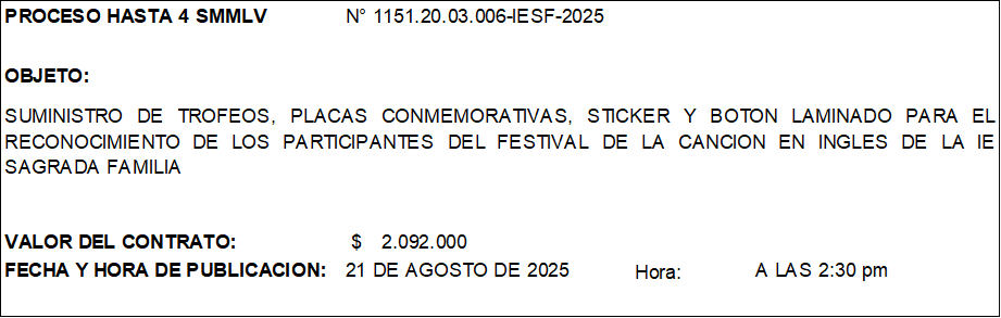 PROCESO No.1151.20.03.006 SUMINISTRO TROFEOS Y OTROS FESTIVAL DE LA CANCIÓN EN INGLÉS
