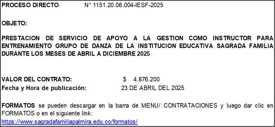 PROCESO No.1151.20.06.004 PRESTACIÓN SERVICIO INSTRUCTOR DANZA