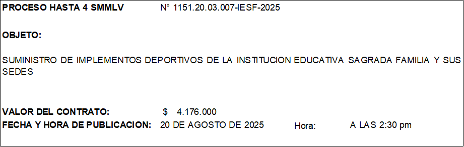 PROCESO No.1151.20.03.007 SUMINISTRO DE IMPLEMENTOS DEPORTIVOS