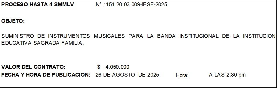 PROCESO No. 1151.20.03.009 SUMINISTRO INSTRUMENTOS MUSICALES BANDA DE PAZ